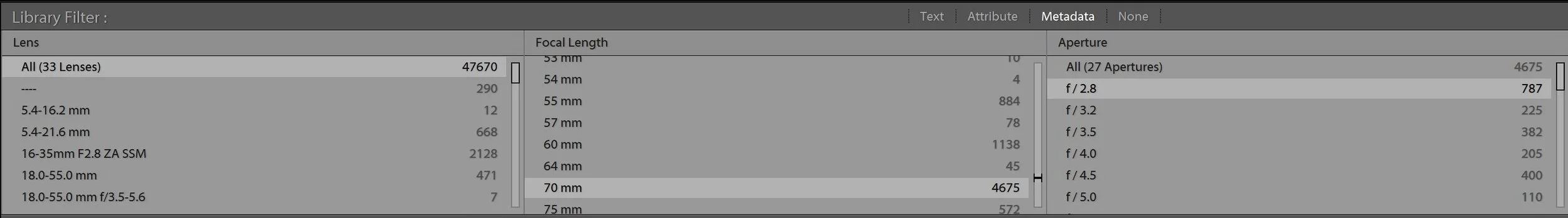 As you can see, it's now possible to see a count of how many photos I have taken at any given focal length and aperture - and more besides if I want to get really geeky!